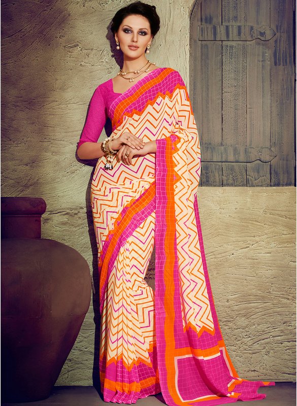 Jabong has Viva N Diva Cream Printed Saree for Rs.1,970.00 - Rs.1,371.00 (Instant Discount) = Rs.599.00 with Free Shipping