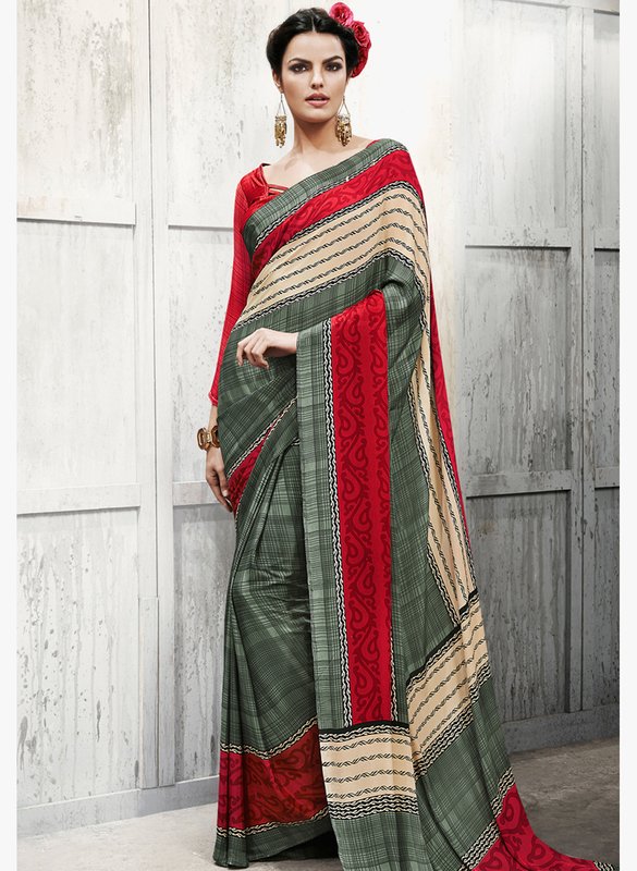 Viva N Diva Green Printed Saree