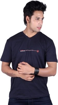 Vivid Bharti Printed Men's V-neck Black T-Shirt