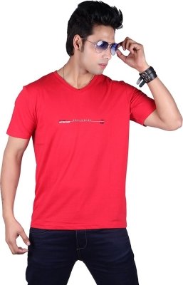 Vivid Bharti Printed Men's V-neck Red T-Shirt