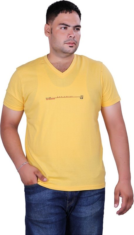 Flipkart has Vivid Bharti Printed Men's V-neck Yellow T-Shirt for Rs.596.00 - Rs.107.00 (Instant Discount) = Rs.489.00 plus Shipping charges