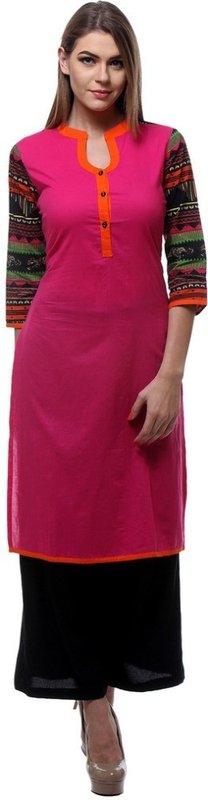 We Desi Casual Self Design Women's Kurti(Pink, Black)