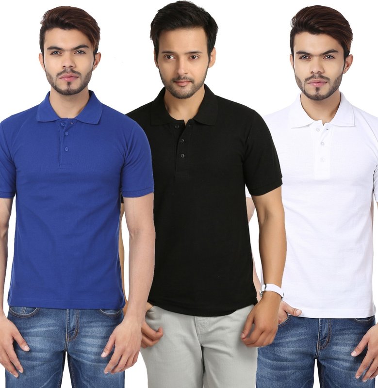 Weardo Solid Men's Polo Neck Black, White, Blue T-Shirt(Pack of 3)