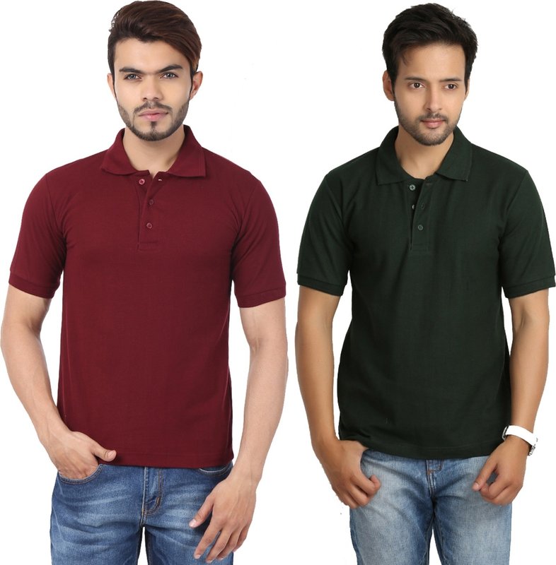 Weardo Solid Men's Polo Neck Dark Green, Maroon T-Shirt(Pack of 2)