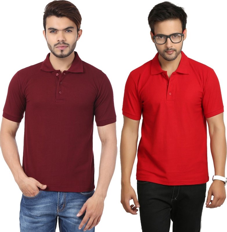 Weardo Solid Men's Polo Neck Red, Maroon T-Shirt(Pack of 2)