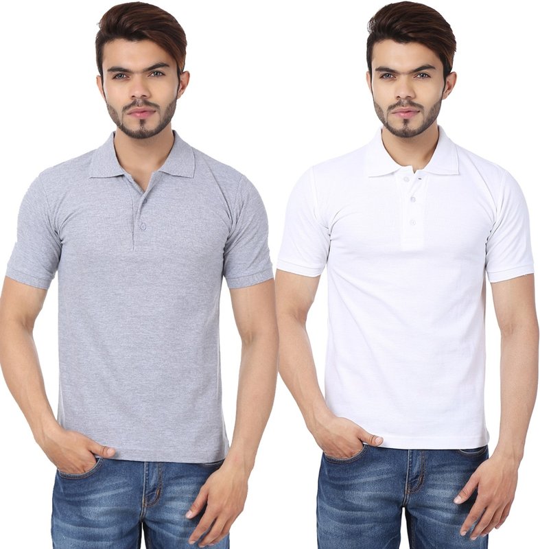 Weardo Solid Men's Polo Neck White, Grey T-Shirt(Pack of 2)