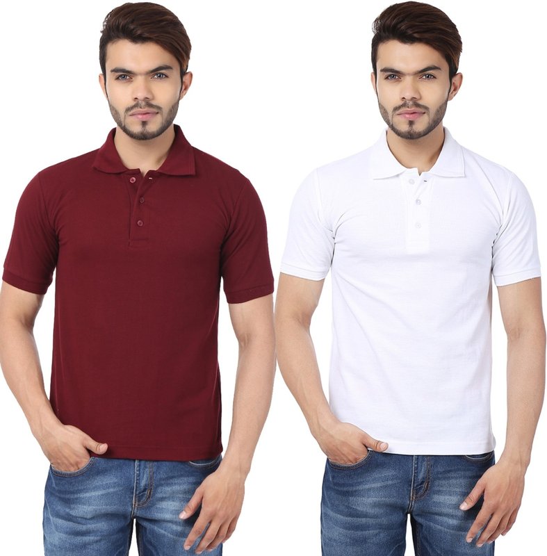 Weardo Solid Men's Polo Neck White, Maroon T-Shirt(Pack of 2)
