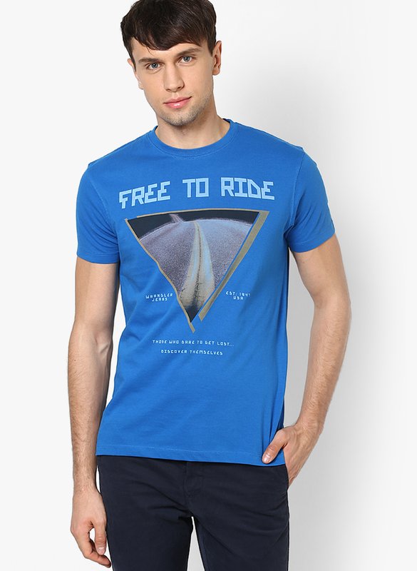 Jabong has Wrangler Blue Round Neck T-Shirt for Rs.1,095.00 - Rs.596.00 (Instant Discount) = Rs.499.00 with Free Shipping