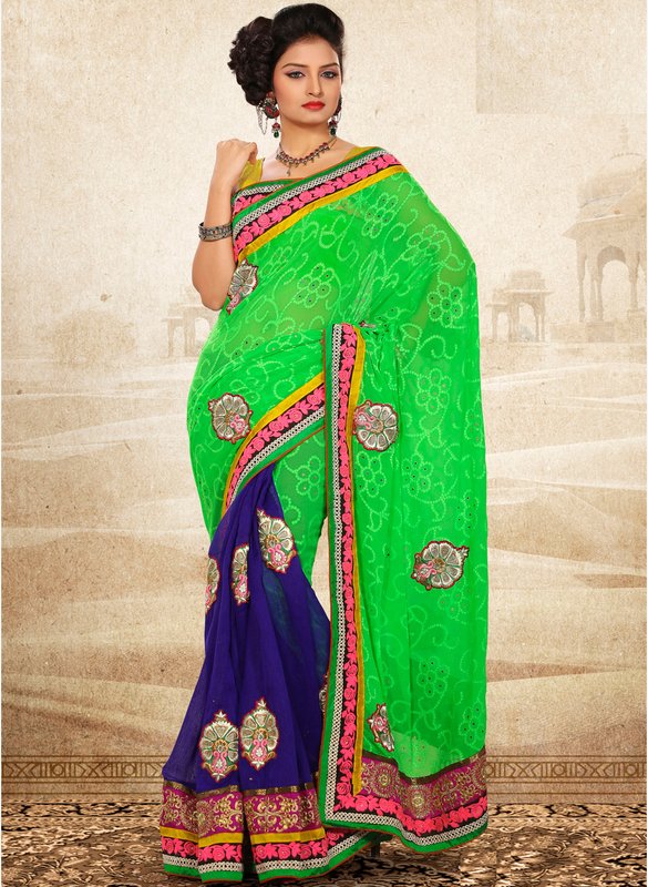 Jabong has Xclusive Chhabra Green Embroidered Saree for Rs.11,975.00 - Rs.7,185.00 (Instant Discount) = Rs.4,790.00 with Free Shipping
