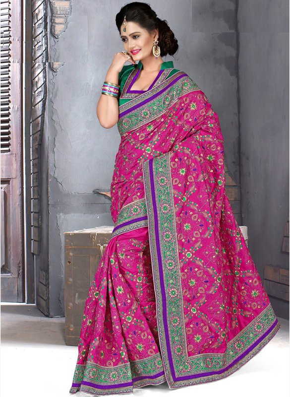 Jabong has Xclusive Chhabra Magenta Embroidered Saree for Rs.13,975.00 - Rs.8,385.00 (Instant Discount) = Rs.5,590.00 with Free Shipping