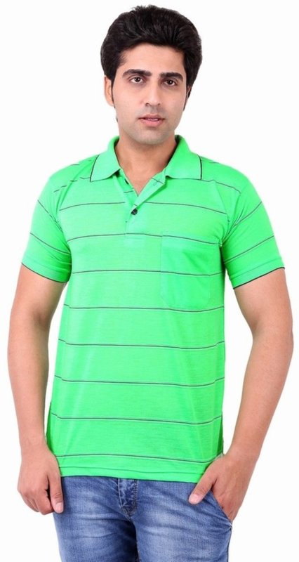 Xensa Striped Men's Polo Neck Green T-Shirt