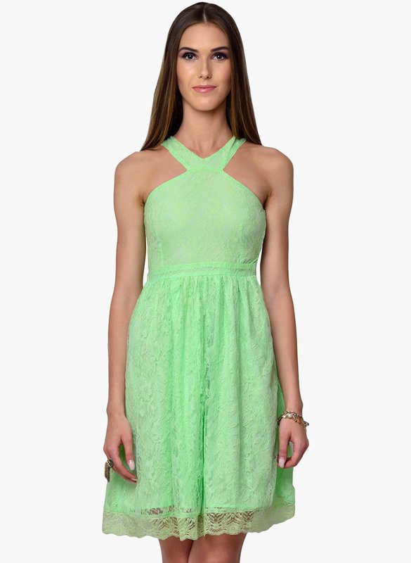 Yepme Green Solid Skater Dress