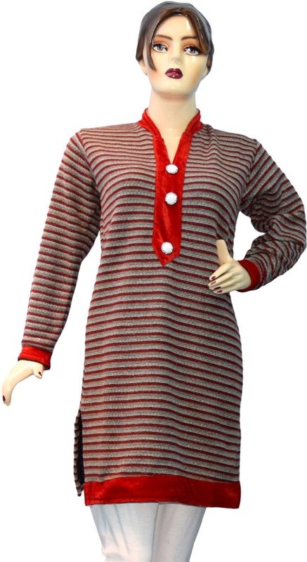 Yumlookup Casual Striped Women's Kurti(Red)