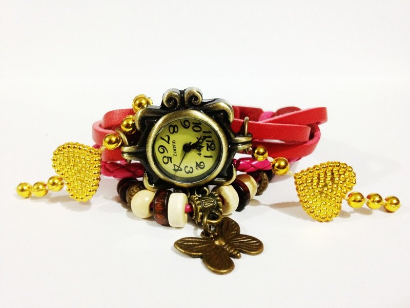 zDelhi.com Golden Heart Bracelet Style Vintage Butterfly Pendent Analog Watch - For Girls, Women