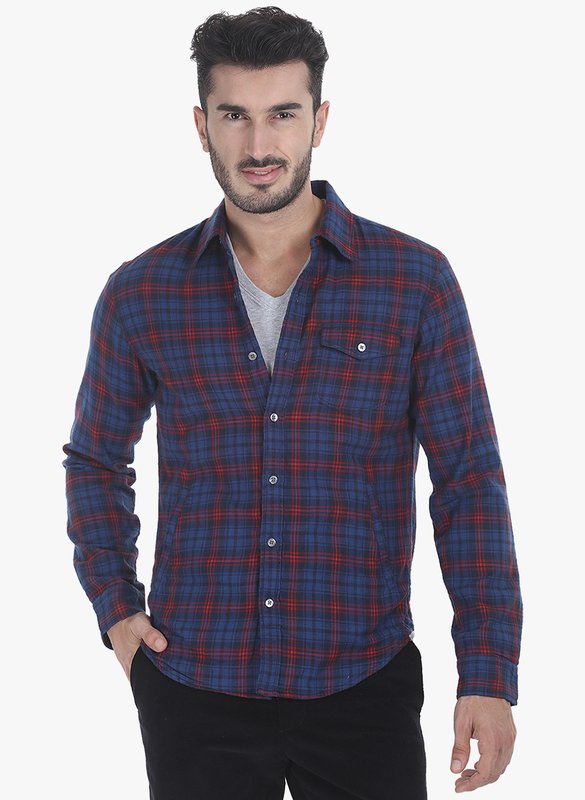 Jabong has Zobello Blue Checked Regular Fit Casual Shirt for Rs.1,649.00 with Free Shipping