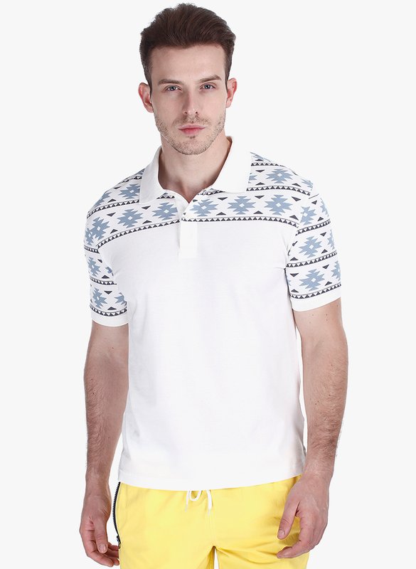 Zobello Off White Printed Polo T-Shirt